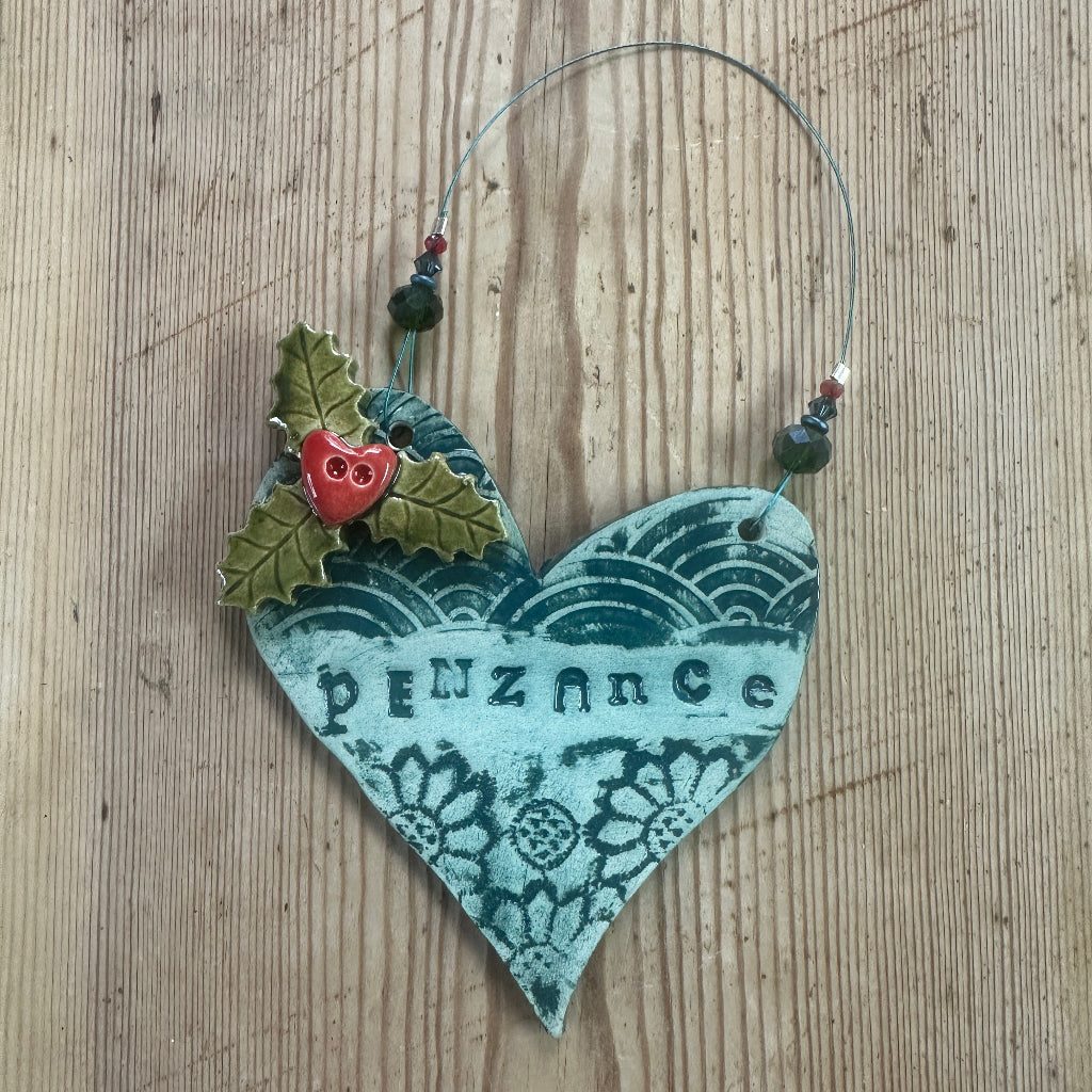 Handmade ceramic heart. Each one is hand printed with lace & wave texture and glazed in a beautiful teal.